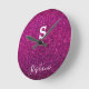 Relógio Redondo Iniciais do Monograma Nome Roxo Rosa Brilho Modern