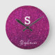 Relógio Redondo Inicial do Monograma Nome Roxo Rosa Brilho Moderno