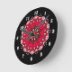 Lindos relógios de parede com um bonito padrão caleidoscópio cor-de-rosa design num fundo preto. Esses relógios fariam presentes de excelente para amigos e familiares ou para você usar em sua casa ou escritório.