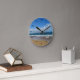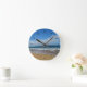 Este belo relógio é perfeito para decorar uma bela casa de praia. Pequenas ondas azuis rolam numa praia maravilhosa sob nuvens bonito. Eu adoro a costa.