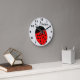 This ladybug design wall clock is a timekeeping device designed to hang on a wall, serving as both a functional tool and a decorative focal point for a room. Made from acrylic and features a pre-installed backside hanging slot for easy hanging and a non-ticking design. You can have any colour background on this wall clock just simply click on the edit this design button and change the background colour to whichever colour you desire. Should you require any help with customising then contact us through the link on this page. Ladybird design wall clock
