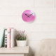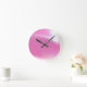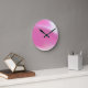 Relógio de parede coberto por uma mancha colorida de rosa e branco. Personalizável.