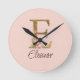 Relógio Redondo Letra Personalizada E Dourado Folha Rosas Rosa Cla