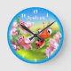 Relógio Redondo Linda Ladybug no jardim das flores. Média