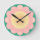 Relógio Redondo Lindas Meninas de Flores de Desenho Animado Rosa e