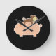 Relógio Redondo Macaco Bebê Andando para trás em um Porco