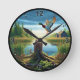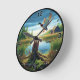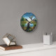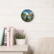Relógio Redondo Mallard personalizável voando sobre um lago tranqu