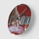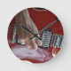 Relógio Redondo Mão que joga a guitarra elétrica vermelha perto do
