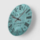 Lindo, único e personalizado design shabby chic apresenta um mapa-múndi antigo em verde-teal vintage com o nome da sua família e o ano de fundação em tipografia preta. Personalize este relógio adicionando suas próprias informações pessoais. Faz um ótimo presente de casamento, aniversário ou mudança. Clique em "personalizar este modelo" para alterar os nomes, fontes e cores para criar um design único. Que acessório elegante para sua sala de estar, quarto ou sala de família. Se precisar de ajuda com a personalização, por favor envie um e-mail para ybnormalone@gmail.com. Obrigada por visitar www.zazzle.com/Personal_Creations. ©Karen Hall