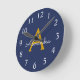 Relógio Redondo Marinho Azul Dourado Script Modern Girly Monogram