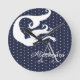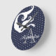 Projetado pela parte de Sandy Closs da decoração temática oceânica. Personalizada com o nome monograma sereia branca no relógio circular azul Marinho.