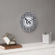 Relógio Redondo Monograma branco preto elegante do teste padrão do