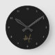 Relógio Redondo do Monograma de Script Dourado Preto Moderno Elegante Um monograma elegante de script dourado combinado com uma fonte branca de san-serif limpa faz uma aparência contemporânea.
