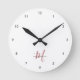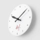 Relógio Redondo Monograma de Script Vermelho Branco Moderno Elegan