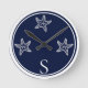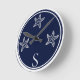 Relógio Redondo Monograma Marinho branco azul Starfish Beach