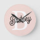 Relógio Redondo Monograma Personalizado Moderno e Nome Pastel Rosa