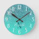 Create your own personalized monogram turquoise and faux teal glitter ombre wall clock.