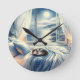 Relógio Redondo Moonlit Coastal Bedroom with Sleeping Cat