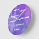 Relógio púrpura personalizado com o nome de dias em uma semana e música batendo design.