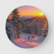 Este relógio de Natal ou feriado apresenta uma cena mágica de neve no campo e é perfeito para a estação de inverno.