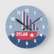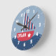 Decorar o quarto de uma criança com este relógio colorido que tem um belo veleiro com listras. A paleta colorida de vermelho, branco e azul torna isso perfeito para uma sala temática náutica. Excelente para garotos marinheiros que amam temas marítimos e náuticos. Personalize o barco com o nome da criança.