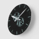 Design de relógio de parede divertida apresenta um fundo preto com a face do relógio neon aqua e um par de dados no centro. Perfeito para amantes de todos os tipos de jogos de dados!
