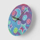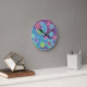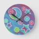 Um céu noturno brilhante com estrelas brilhantes e lua listrada. Relógio com um design personalizável roxo, rosa, azul e verde para você personalizar com seu próprio texto, imagens e ideias. Outras opções de estilo disponíveis. Imagem criada de um desenho a lápis de cor original por Jess Perry.