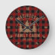 Relógio Redondo Nome da Família Cabina Xadrez Vermelha Buffalo Gra