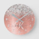 Personalize facilmente esse design de relógio chic redondo, de tendência, com brilho bonito de ouro rosa em um fundo metálico escovado de rosa dourado.