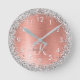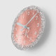 Personalize facilmente esse design de relógio de parede em chic com brilho bonito prateado em um fundo metálico escovado de rosa dourado.