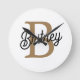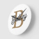 Relógio Redondo Nome do Monograma Elegante Moderno Script Dourado
