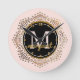 Crie seu próprio relógio de parede monogramado boho trendy em rosa bege feminino e dourado - círculo preto com monograma no centro em dourado falso e rosa bege pálido, tanto a inicial monogramada quanto o nome em letra cursiva e uma letra tradicional. Enquadrado por belo mandala floral com aparência metálica dourada. Números do relógio com efeito metálico dourado. Com fundo rosa bege correspondente. Verdadeiramente um relógio único. Decoração de casa boho chic e personalizada. Seria um presente lindo para chá de bebê menina ou exibido no berçário de bebê menina, quarto de adolescente ou dormitório de meninas também.