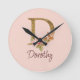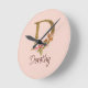 Relógio Redondo Nome Personalizado Folha de Ouro Rosa Cor-de-Rosa