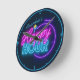Relógio Redondo NOME Personalizado Retro Faux Neon Happy Hour Bar