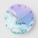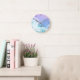 Relógio Redondo Nuvens de Brilho Rosa Roxo Caprichosas Quarto Fofo