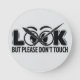 Um design lúdico, mas firme, que lhe diz tudo com apenas um olhar. Este trabalho de arte de preto e branco ousado mostra a palavra dominante "OLHAR" acima de um par de olhos de desenho expressivos que chamam atenção instantaneamente. Com a mensagem suave mas clara "MAS POR FAVOR NÃO TOQUE" por baixo, esta design é perfeita para qualquer um que ama uma mistura de humor, fronteiras e talento artístico. Seja impresso em um poster, camisa ou adesivo, é certo que faz as pessoas sorrir — e pensar duas vezes.