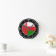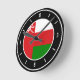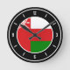 Oman Flag Elegante Round Clock com a bandeira de Omã posicionada no meio e adoráveis números de relógio branco na borda do relógio. O delicioso fundo preto com os elementos ovais brancos finaliza o design, colocando ênfase na elegância. A bela combinação de preto e branco com a hábil integração das cores da bandeira nacional faz deste relógio o presente perfeito e a peça do excelente na parede. © 2022 PaísesDoMundo