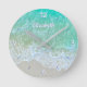 Relógio Redondo Onda turquesa oceânica, Personalizar Nome ou Monog