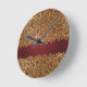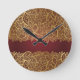 Relógio Redondo Ouro folheto sobre fundo vermelho