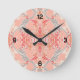 Relógio Redondo Padrão Barroco Moderno em Creme Vermelho Rosa Arre