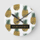 Relógio Redondo Padrão De Abacaxi De Aquarela Tropical Com Nome