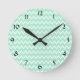 Relógio Redondo Padrão de Chevron Branco e Verde da Casa da Moeda