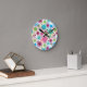 Relógio Redondo Padrão de fundo da coruja de flores brancas