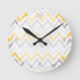 Relógio Redondo Padrão de Ikat de Chevrons de Cinza Amarela