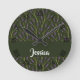 Relógio Redondo Padrão dos ramos florais roxos e castanhos