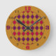Relógio Redondo Padrão Dourado de Harlequin Roxo e Coral