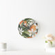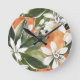 Relógio Redondo Padrão Tropical Laranja e Flores de Água