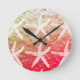 Relógio Redondo Padrões de Estrela-do-Mar Branco com Folha Dourada
