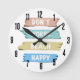 Um belo jogo de palavras. Em vez de Don't Worry Be Happy, este impressão diz Don't Worry BEACH Happy. Perfeito para o Verão, uma festa na praia, ou só o amante da praia do dia a dia! Pastel Simples e Bonito Não se preocupe com o relógio redondo feliz da BEACH