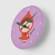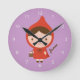 Decorem o quarto de uma garotinha com este relógio fofo! Tem uma garotinha num carregando vermelho de boné, uma pequena cesta. Excelente para meninas que adoram o livro da história do capô de equitação vermelha! Personalize com o nome da criança no canto. Números brancos para a cara do relógio. O fundo roxo pode ser alterado no modo de personalização para corresponder ao esquema de cores da sala.